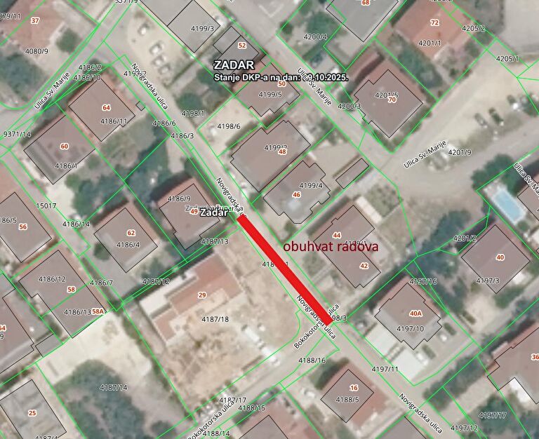 Obavještavaju se vozači u cestovnom prometu da će zbog izvođenja radova društva VODOVOD d.o.o. iz Zadra na oborinskom sustavu u dijelu Novigradske ulice u Zadru, od dana 20. listopada 2025.g.(ponedjeljak) do 24. listopada 2025.g. (petak) na snazi biti privremena regulacija prometa.