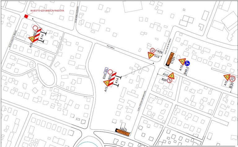 Regulacija prometa obuhvaća zatvaranje dijela ulice Put Dikla za sav promet, te će se promet odvijati obilaznim pravcem: