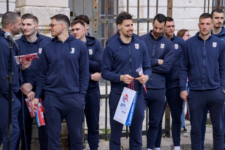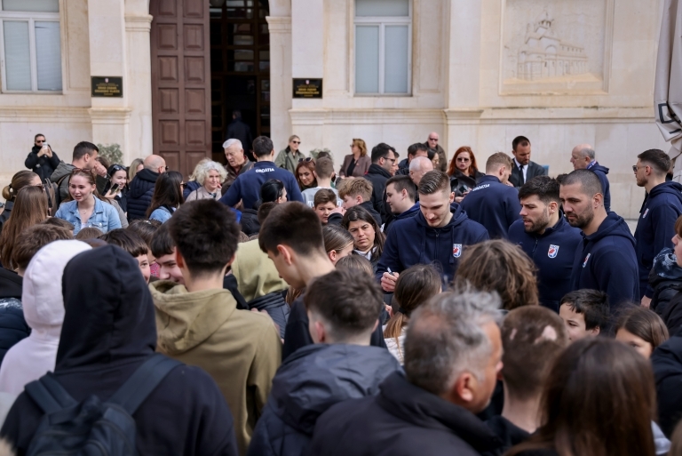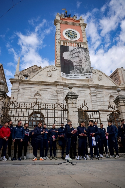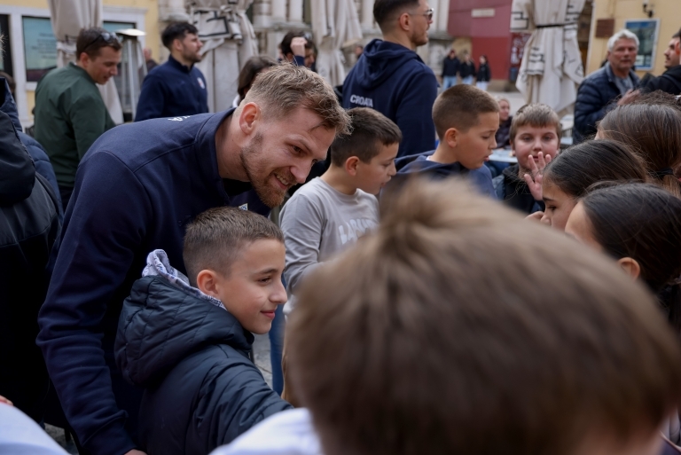 Uoči prijateljske utakmice sa Švicarskom, hrvatski rukometni reprezentativci su nakon jutarnjeg treninga stigli na zadarski Narodni trg.