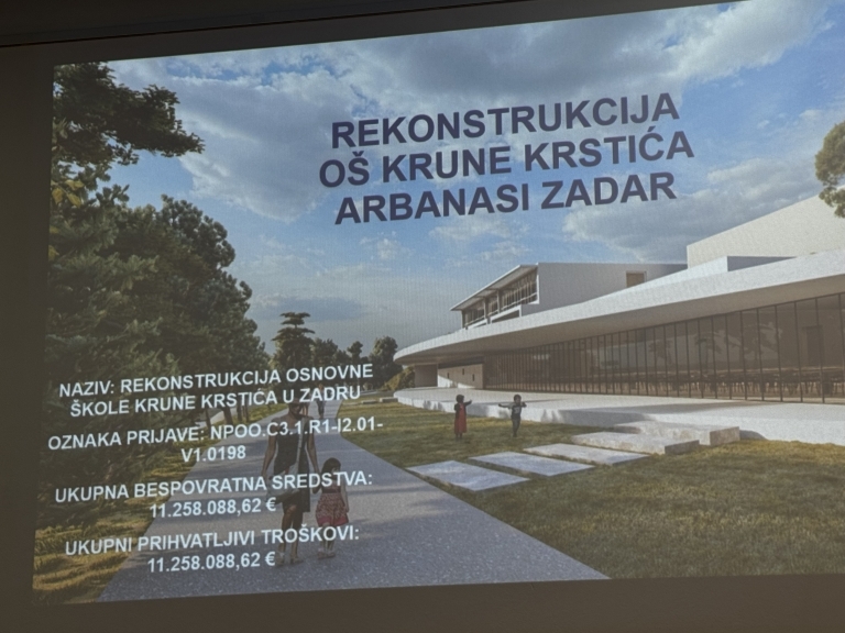 Rekonstrukciju Osnovne škole u Arbanasima okupljenima je predstavila Tihana Biuk - Magaš, pročelnica Upravnog odjela za odgoj i školstvo.
