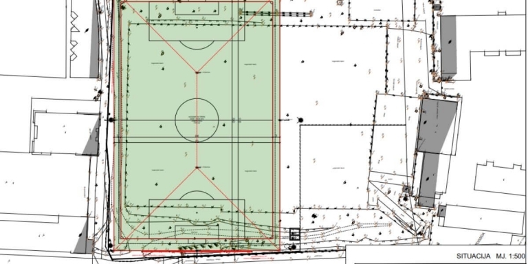 U sklopu projekta igralište će se okrenuti u smjeru sjever-jug i odgovarat će FIFA standardima s obzirom na to da će završni sloj činiti umjetna trava na kojoj će se moći igrati službene utakmice najviše razine. Planom uređenja predviđena je i gradnja jednog manjeg igrališta na otvorenom. Prema planu, igralište će imati dimenzije približno 64 x 100 metara, dok će s okolnim zaštitnim površinama zauzimati prostor od oko 70 x 110 metara. U sklopu igrališta planira se i sustav navodnjavanja i odvodnje, s nadzemnim spremnikom kapaciteta minimalno 20 kubičnih metara te strojarnicom, čime će se osigurati nesmetano funkcioniranje prskalica i održavanja travnjaka. Na prostoru će biti instalirana moderna sportska rasvjeta s 48 LED reflektora.