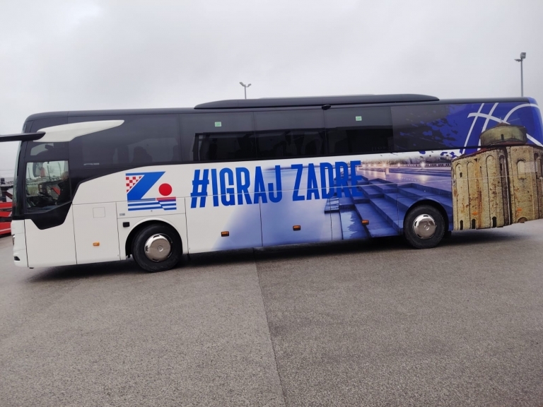 Riječ je o autobusu najnovije generacije, modelu Mercedes-Benz Tourismo koji je brendiran prepoznatljivim bojama i sloganom “Igraj Zadre”