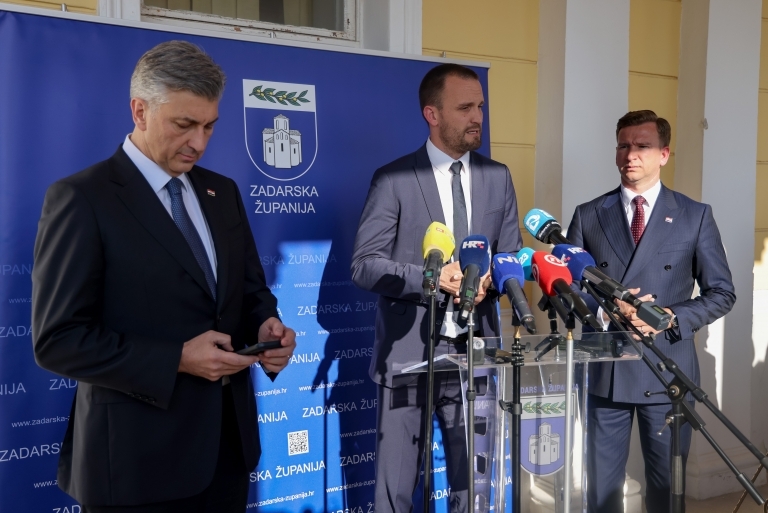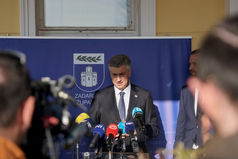 Premijer Plenković na početku obraćanja medijima zahvalio se na gostoprimstvu županu Bilaveru i gradonačelniku Erliću.