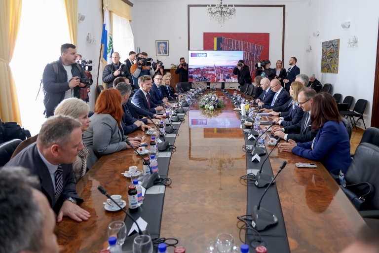 U Maloj Vijećnici Doma Zadarske županije susreo se sa županom Josipom Bilaverom i gradonačelnikom Šimom Erlićem, sa suradnicima.
