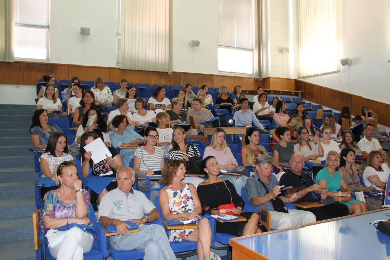 Uvodnu riječ su dale voditeljica projekta Martina Vuković i njena zamjenica Jelena Grancarić Milin. Gradonačelnik Branko Dukić pozdravio je sve okupljene i posebno zahvalio pomoćnicima u nastavi na uloženom trudu i strpljenju u radu s djecom s teškoćama: - Želim vam čestitati na vašem zalaganju i strpljivosti koje ste pokazali , jer svu djecu trebamo štititi i voljeti, te im pomoći da se što bolje uklope u svakodnevni život. Osvrt na realizaciju projekta kroz primjer dobre prakse prezentirale su Nada Meštrović, soc.pedagog - predsjednica Povjerenstva za uvođenje pomoćnika u nastavu u školama Grada Zadra , Ignis Lemezina, učiteljica iz OŠ Bartula Kašića i Ivana Vulić, rehabilitator iz OŠ Stanovi na primjeru djevojčice Korine i njenog obrazovnog puta popraćenog pomoćnicima u nastavi.